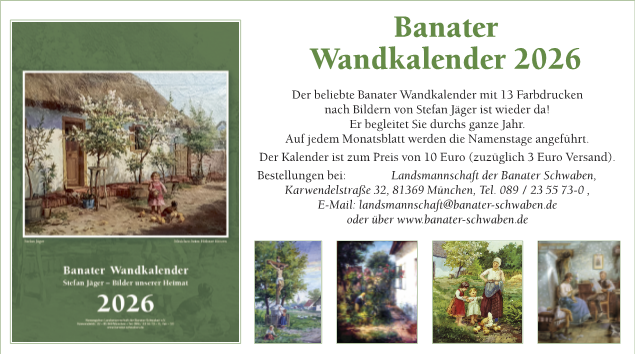 Auch in diesem Jahr wird der Kreisverband Heilbronn eine Sammelbestellung (bei einem rabattierten Betrag, ohne Versandkosten) für den Erwerb der beliebten Stefan-Jäger-Kalendern tätigen. Bestellungen können beim Kreisvorsitzenden Toni Michels gemeldet werden. Die Auslieferungen erfolgen am 29. November beim Herbstball in Nordhausen oder am 14. Dezember bei der Weihnachtsfeier in Heilbronn.
