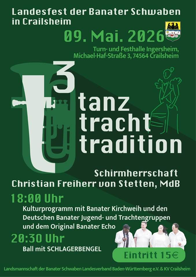 Im Rahmen ihrer großen Jubiläumstournee „70 Jahre Egerländer Musikanten“ gastierten die „Egerländer Musikanten“ am 27. März 2026 in der Harmonie Heilbronn. Das Konzert war ein herausragendes Ereignis, das nicht nur zahlreiche Liebhaber der Blasmusik anzog, sondern auch für die Banater Schwaben zu einem besonderen Treffpunkt wurde. Viele Mitglieder der Gemeinschaft nutzten die Gelegenheit, an diesem Abend zusammenzukommen und gemeinsam die Musik zu genießen.