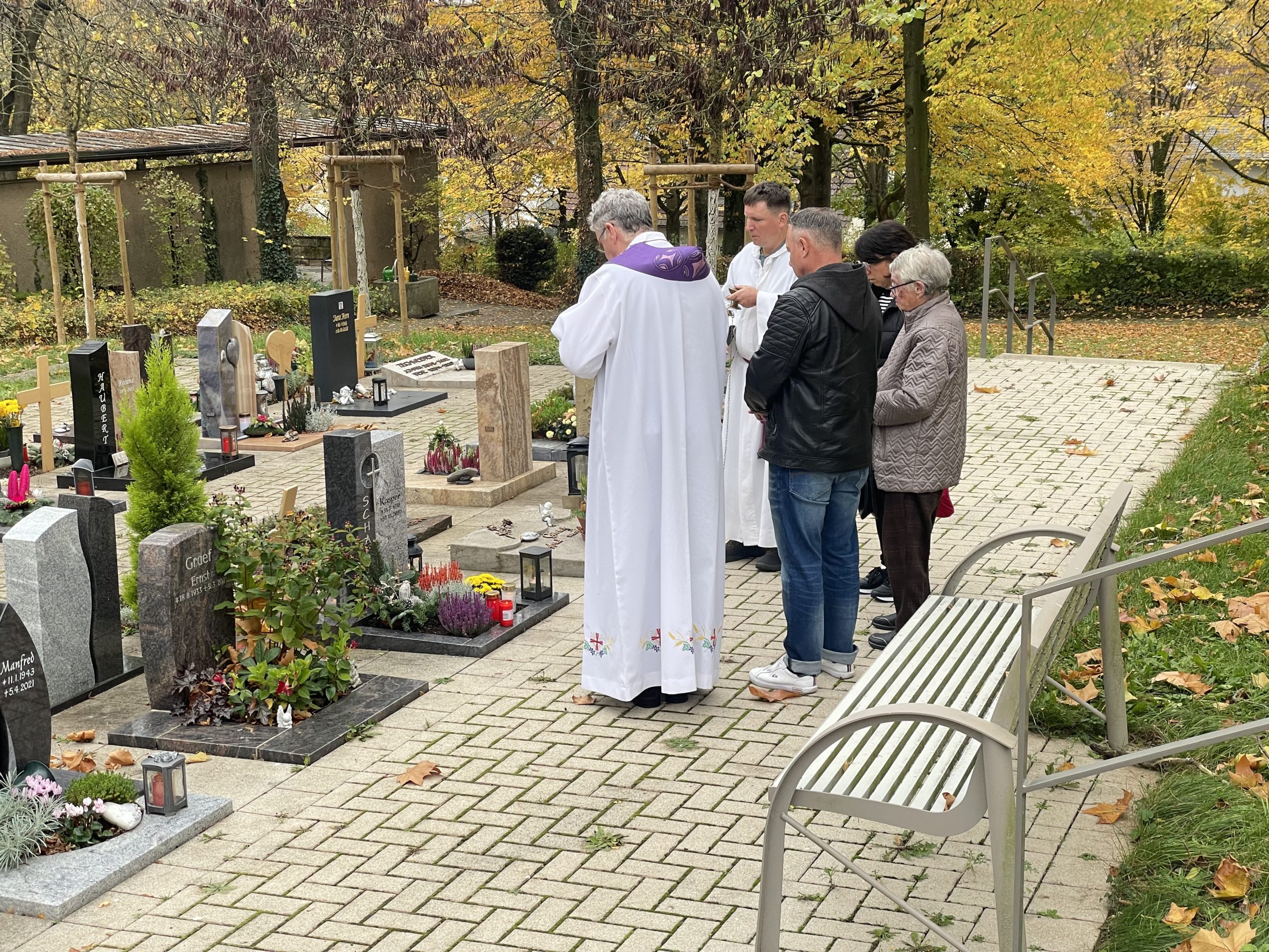 In Nordheim hat sich in diesem Jahr Heimatpfarrer i. R. Dr. Imre Tempfli nach dem Gottesdienst wieder die Zeit genommen, um die Gräber, an denen Angehörige auf ihn warteten, zu besuchen, gemeinsam mit ihnen zu beten und die Gräber mit Weihrauch und Weihwasser zu segnen. Es waren auch viele Banater Schwaben auf dem Friedhof in Nordheim und Pfarrer Tempfli hat gerne mit den Landsleuten ein paar Wörter gewechselt.
